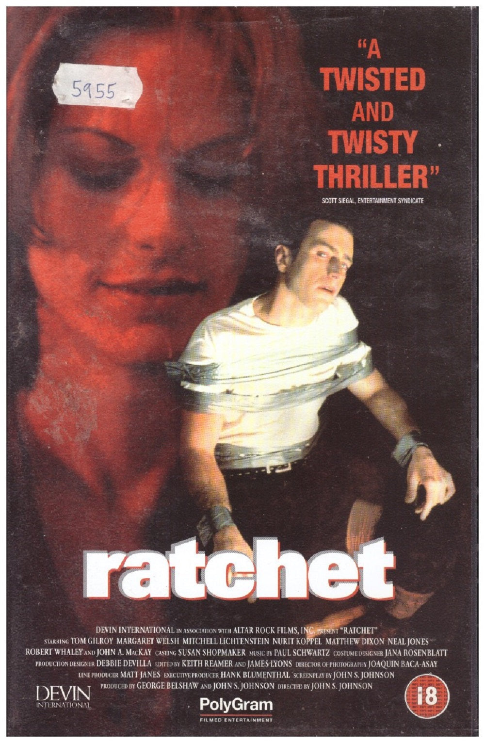 Ratchet VHS from Polygram Filmed Entertainment (PG 1184). 1997 VHS release of the thriller starring Tom Gilroy and Margaret Welsh. Complete in large case. Has sticker of front of case but is in otherwise very good condition.