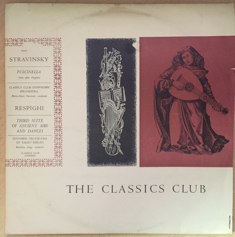Stravinsky: Pulinella – Suite After Pergolesi/Respighi: Third Suite Of Ancient Airs And Dances by Classics Club Symphony Orchestra/Chamber Orchestra Of Radio Berlin from Classics Club (REMBRANDT X115). 1960’s classical album. Album has minor scuffs and marks but is in very good plus condition. Sleeve has minor creasing, marks and front damage but is in good condition.